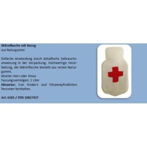 1L Wärmeflasche mit Bezug Muster Herz oder Kreuz
