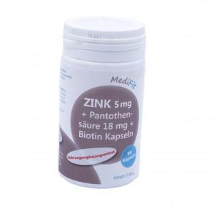 Zink 5 mg + Pantothensäure 18 mg + Biotin Kapseln