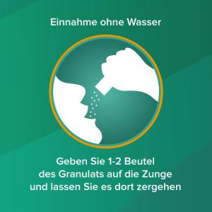 - Das Granulat löst sich im Speichel auf und kann dann geschluckt werden. Falls gewünscht, kann etwas Wasser nachgetrunken werden. Die Einnahme soll nicht auf nüchternen Magen erfolgen.