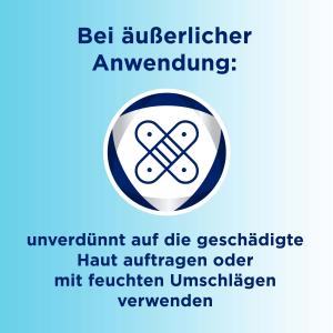 - Anwendung der unverdünnten Lösung auch in Form von Spülungen oder Umschlägen möglich