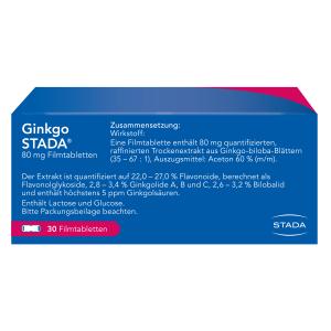 Dosierung- Erwachsene nehmen 2-mal täglich 1 und 1/2 Ginkgo STADA® 80 mg Filmtabletten ein (entsprechend 240 mg Ginkgo biloba-Trockenextrakt pro Tag).