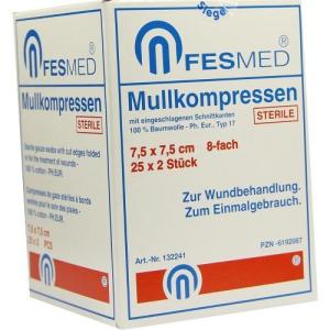 MULLKOMPRESSEN STERIL 7.5X7.5 ES 8F